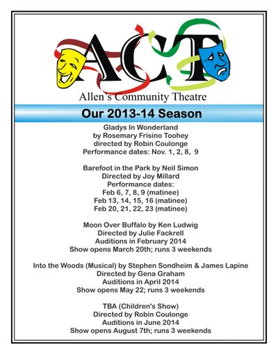 Click here to see our fabulous cast and crew lists for each 2013-2014 production. We're so proud of them all and their fine work! Also see the award winners for the season's Grahamie Winners.