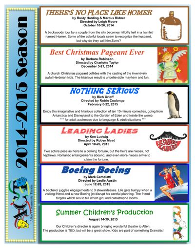 Click here to see our fabulous cast and crew lists for each 2014-2015 production. We're so proud of them all and their fine work! Also see the award winners for the season's Grahamie Winners.